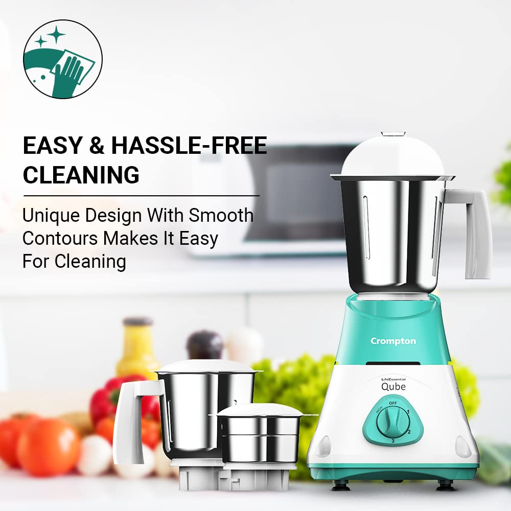 Crompton QUBE 750X Mixer Grinder with MaxiGrind with 5 year warranty qube 750 Mixer Grinder (3 Jars,White,Green).