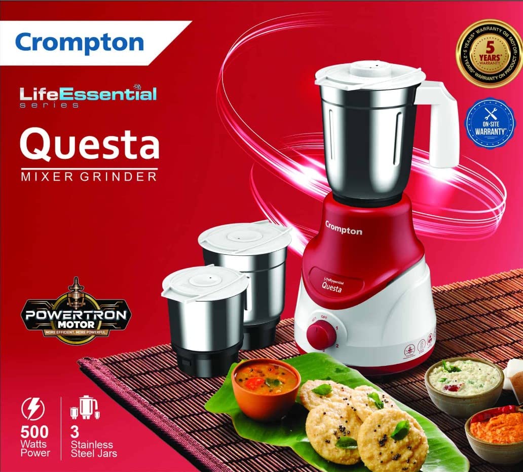 Crompton QUESTA MIXER GRINDER LIFE ESSENTIAL 500 Mixer Grinder (3 Jars,RED & WHITE).