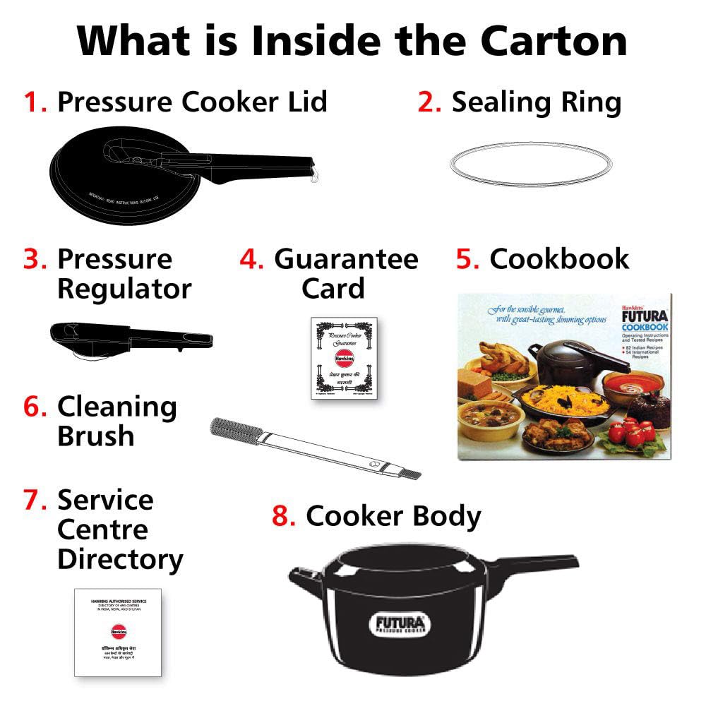 Built with a thick hard anodised finish, the Hawkins Futura Pressure Cooker can absorb heat rapidly to cook food in a short time, thereby making it energy-efficient. Also, it is designed to look new even after years of usage. Equipped with a pressure regulating system, this pressure cooker allows the release of pressure with a simple finger tap to prevent the steam vent from clogging. A double-thick base in this pressure cooker always remains flat for convenient placement on the burner. Also, it heats evenly and is suitable for light frying before you pressure cook your food. This efficient pressure cooker is built with an inside-fitting lid for safety and it keeps the pressure locked just like the door of a jetliner. Made with a safety valve below the lid’s handlebar, this pressure cooker deflects the steam in a downward direction to avoid burns. Also, the gasket within this pressure cooker has less exposure to steam and does not rub each time you open or close the lid. This extends the life of this pressure cooker. Built with a sturdy pivot, this pressure cooker does not put pressure on the plastic handles. This gives better support while handling this pressure cooker and the handles last long as well. Ideal for electric stoves, gas, ceramic cooktops, and halogen cooktops, this pressure cooker is a versatile pick.