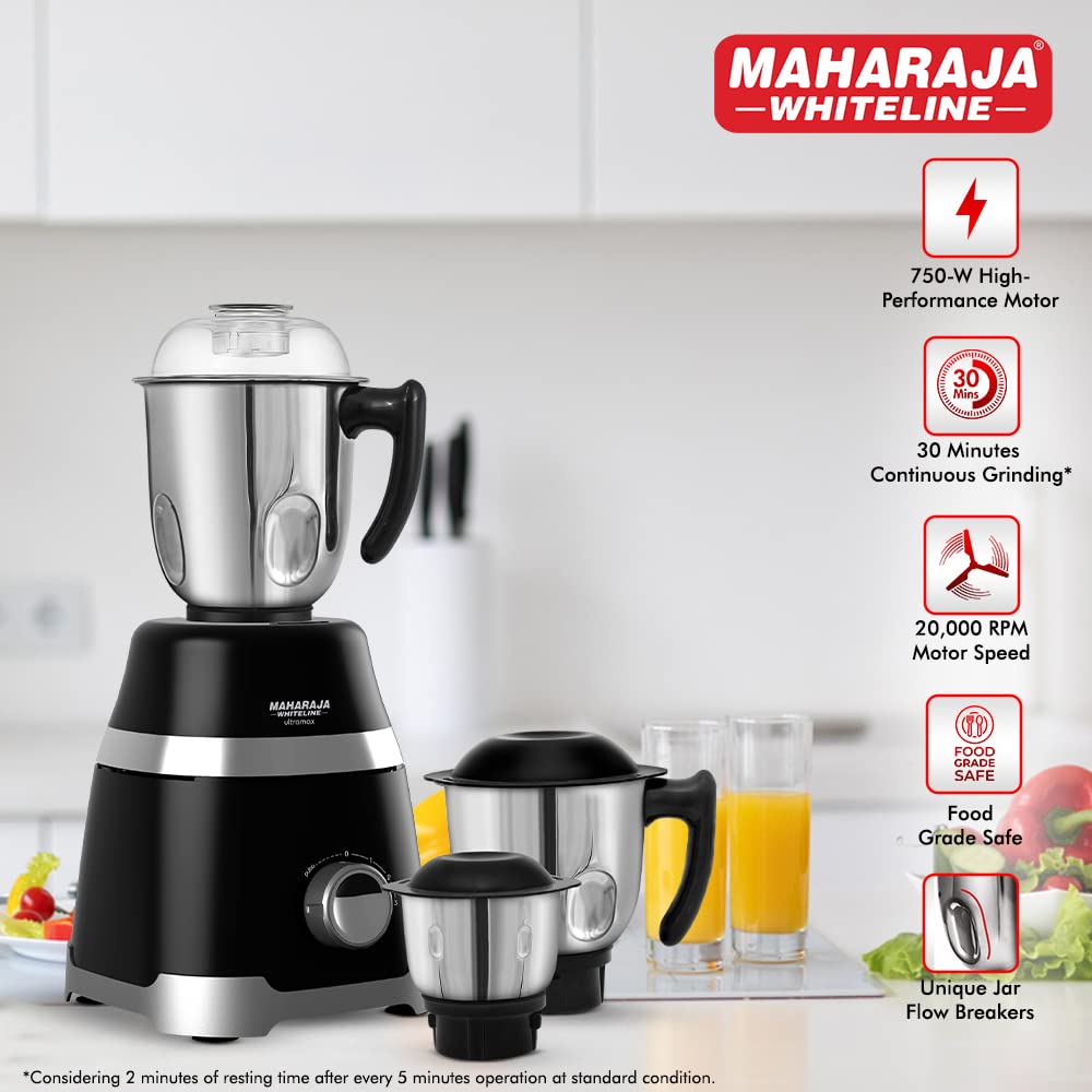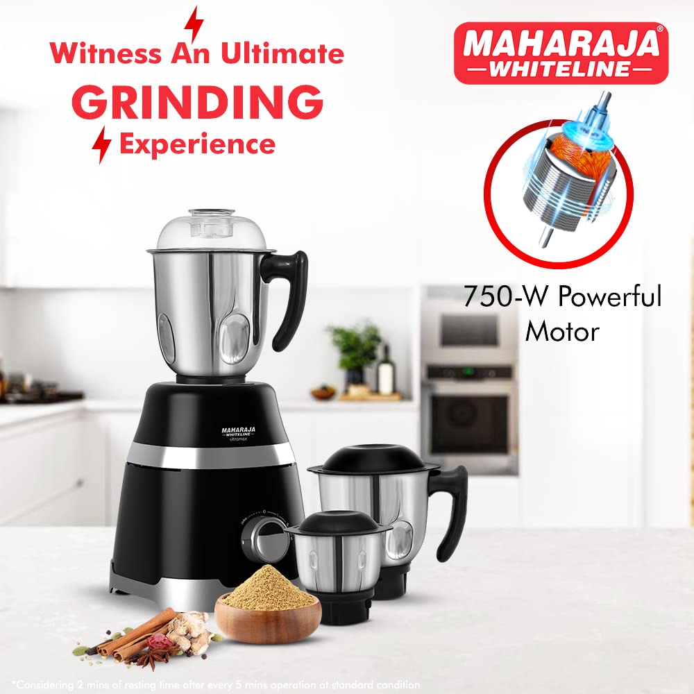 Maharaja Whiteline Deluxe MX-210 Ultramax 750 W Mixer Grinder (3 Jars,Black).