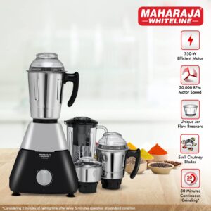 Maharaja Whiteline MX-225 Infinimax Elite 750 W Mixer Grinder (4 Jars,Grey,Black).
